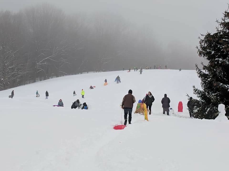 Submitted Photo The Second Annual Cassadaga Winter Festival drew a large crowd this past weekend. One of the many activities included sledding which was organized by Boy Scout Troop No. 219.