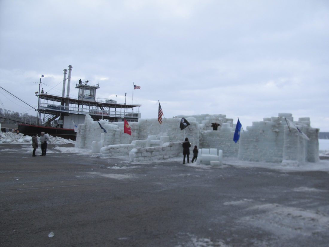 A litany of volunteers and groups that assisted with the ice castle’s construction was read, including Swanson, Nick Andriaccio, Scott Dearing, Don Emhardt, Jeff Lang, Ron Miller, John Buxton, Village of Mayville Department of Public Works, Town of Chautauqua Highway Department as well as the businesses that provided lunches during construction.