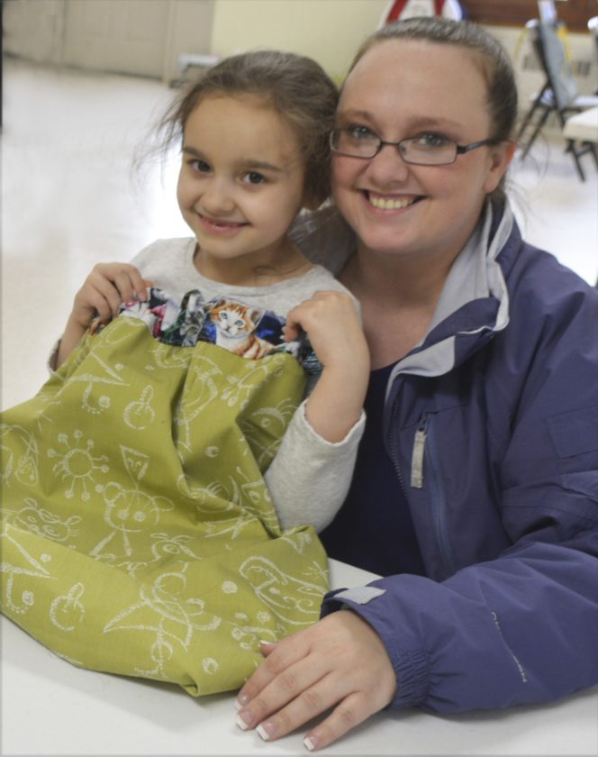 - Submitted Photo Jayela, age 7, is proud of the fabric bag she made, with her mother, Tiffany Gloss’, help.