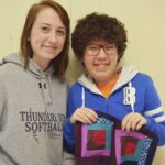 Submitted Photo Allyson Byrd and Lonnie Sheffield show off quilt squares for a pillow Lonnie is making.