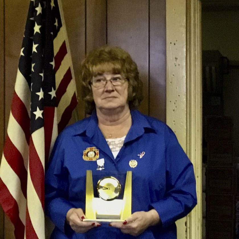 President Rabb attended the Department of New York Convention in Albany. The Auxiliary received the following awards: a certificate and monetary award, first place Americanism, Veterans and Family support, second place hospital. The Auxiliary also received a banner for 100 percent in membership. President Rabb received in the Auxiliary group “President of the Year” and received a Things Remembered engraved clock.