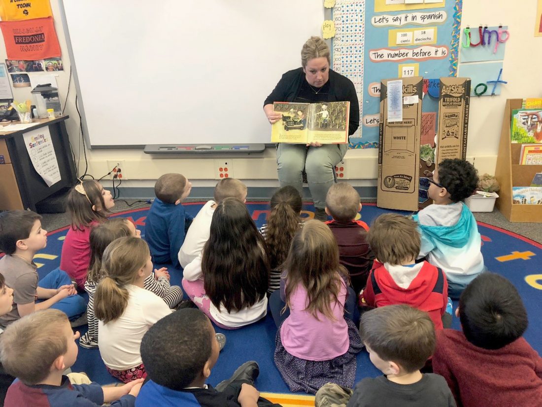 CCE Chautauqua 4-H Educator, Molly Brown, reads to students at Fredonia Elementary.