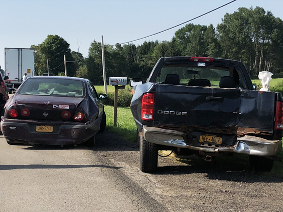This car and pickup were involved in the morning accident on Route 60 between Cassadaga and Stockton.