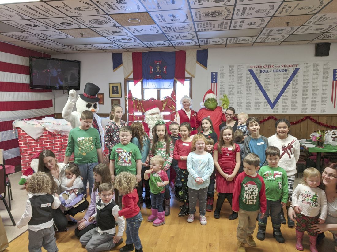 The Silver Creek Overseas Veterans held their Children’s Christmas Party Dec. 21. Children met Santa and Mrs. Claus and got to visit with them and receive Christmas presents. Also in attendance was the mean old Grinch and Frosty the snowman who met with the children. There were refreshments and food for the kids along with games and crafts. Special thanks to the Silver Creek Fire Department for helping Santa to arrive on time and to all the helpers especially Les and Sonja Ormsby, Don and Cindy Thurston, Randy Beutel, Sunset Bay Restaurant for their donation to the event, members of the VFW Auxiliary, social members and to all who made this event possible.