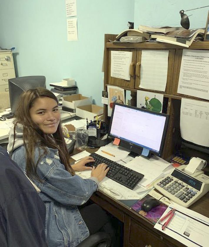 Submitted Photo Danaceus Maybee, a senior at Silver Creek High School, is hard at work during her recent internship at Northern Chautauqua Federal Credit Union. The district recently launched an internship program and is cooperating with various local organizations and businesses to give upperclassmen a peek at various vocations.