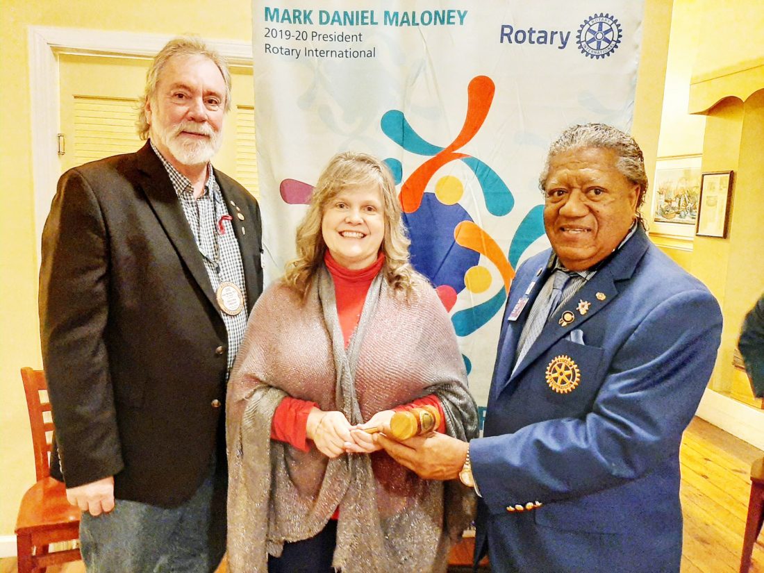 Submitted Photo On Jan. 14, Rotary District 7090 Governor Bob Artis, right, and Area 16 Assistant Governor Michele Starwalt, center, visited with Westfield-Mayville Rotary Club members. At left is Westfield-Mayville Rotary Club President John "Doc" Hamels.