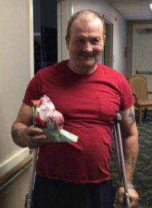 Pictured is Cornelis Feenstra with therapy staff Amanda Roets, Michele Compton, Gwen Gleason, Karen Kaminski, Lisa Coudrey and Elizabeth Duga with a special St. Nicholas day treat.
