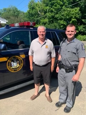 Dustin, who became a New York State Trooper himself, is pictured with Burns two decades later.