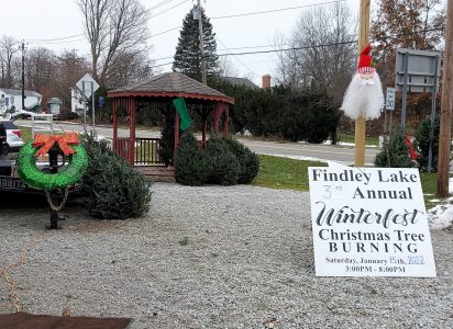 The Winterfest and tree burning are scheduled for Jan. 15. While many of the trees that go up in flames are from Findley Lake Landscape, anyone is invited to bring their tree to the burning.