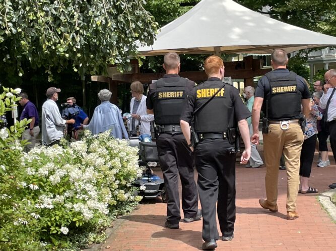 OBSERVER Photos by Gregory Bacon There were plenty of officers on the grounds of Chautauqua Institution Monday as U.S. Rep. Jamie Raskin visited.