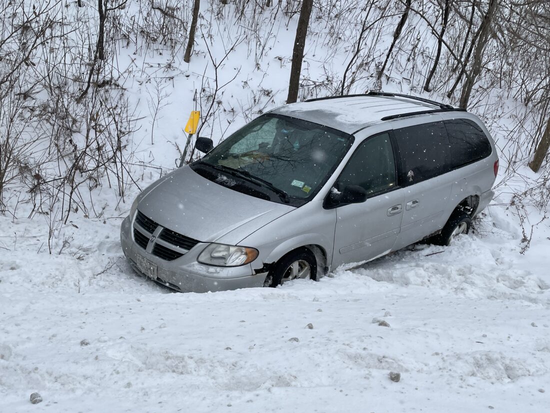 OBSERVER Photo by Gregory Bacon A van traveling on Route 60 in the town of Pomfret slid off the road around 1 p.m. Monday. Roads were slick throughout the day. No injuries were reported.