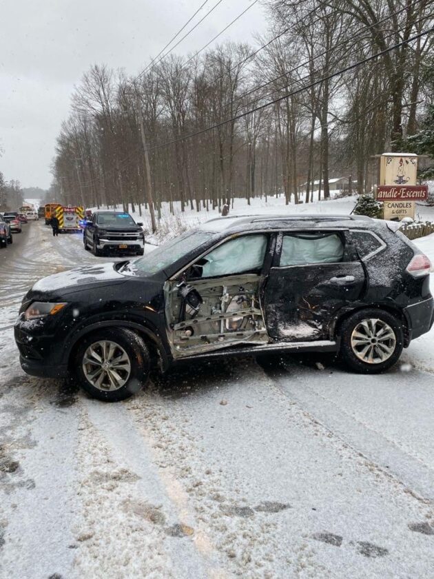 According to the Chautauqua County Sheriff’s Office, the SUV operated by Tori Carlson, 29, of Jamestown, entered Route 394 from Bly Hill Road. Deputies say the vehicle went into the intersection due to “unreasonable speed” for the condition of the road Thursday morning.