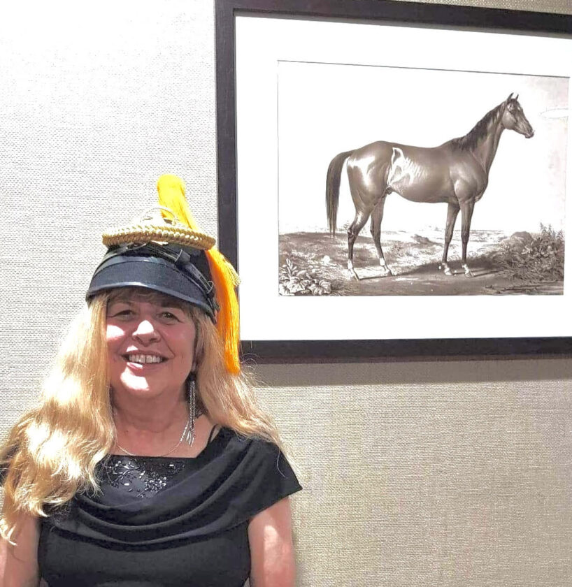 Submitted Photo Anita Donofrio wears a 7th Cavalry parade helmet. The helmet sports a dyed goldenyellow horse’s tail. Cavalry colors were navy blue and yellow.