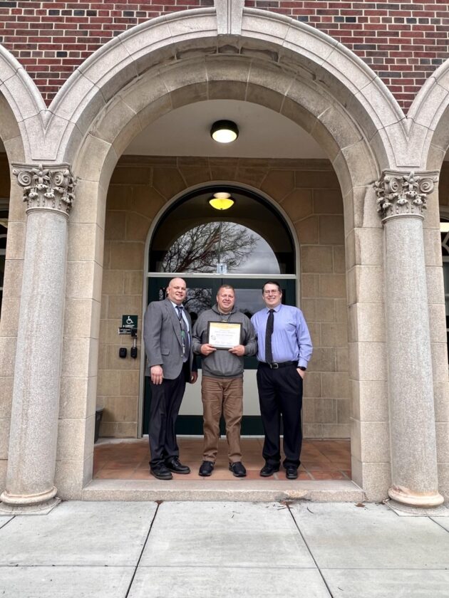 The Brocton Central School District officials accepted a certificate to commemorate the district’s safety efforts from Utica National representatives. This marks the eighth year in a row that the Brocton Central School District has received the “School Safety Excellence Award”.
