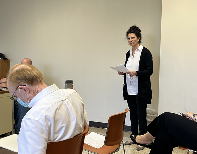OBSERVER photo by Eric Tichy Justice Marilyn Gerace speaks during an Ellicott Town Board meeting on Monday.
