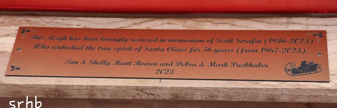 - The plaque on the float, dedicating it to Scott Serafin, who played Santa for over 50 years before his passing this year.