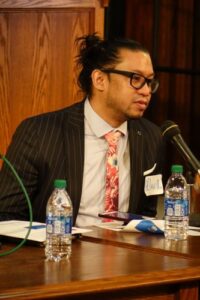 Pictured in an Observer file photo at left is Noel De La Rosa in April 2022 during a community panel on refugees at the Robert H. Jackson Center in Jamestown.