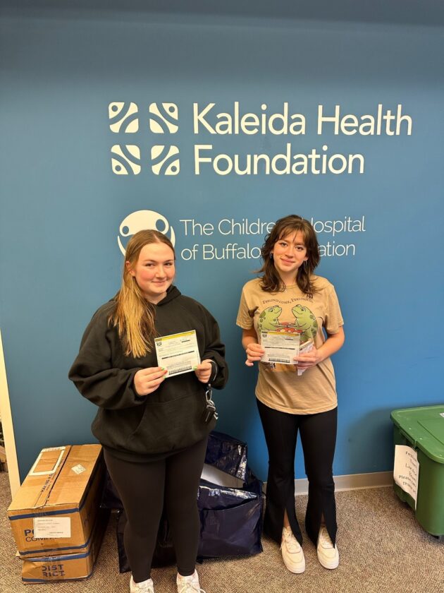 Silver Creek seniors Stephanie VanCheri and Kaelee Weiskerger are working toward obtaining their seal of civic readiness. They recently hosted a spaghetti dinner and basket raffle at Mount Carmel Church with donations from local businesses like Tom’s Family Restaurant, Villaggio Italiano, Hanford Country Market, Sunset Bay Restaurant, Rosina Real Italian Style, Tops, Save A Lot and Walmart for supplies and basket raffles. The baskets were made by Patricia Kelly. Through their valiant efforts, these young women raised $1,000 that they then donated to Oishei Children’s Hospital. On March 7, VanCheri and Weiskerger delivered their checks. They met with an official at the Kaleida Health Foundation for Oishei Children’s Hospital. The Seal of Civics committee is proud of all the work these students and others have done to help bring acts of service to our area!