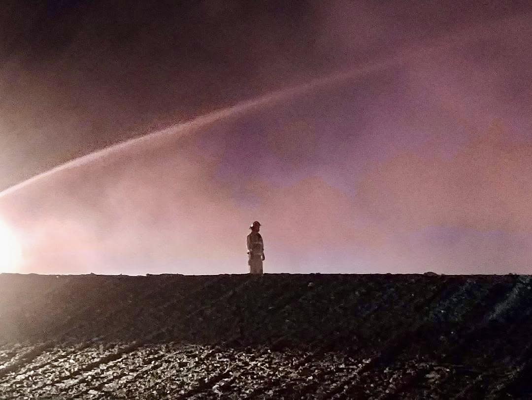 Photos courtesy of the Sinclairville Volunteer Fire Company #1 Facebook page A volunteer firefighter is pictured at an overnight fire at the Chautauqua County Landfill.