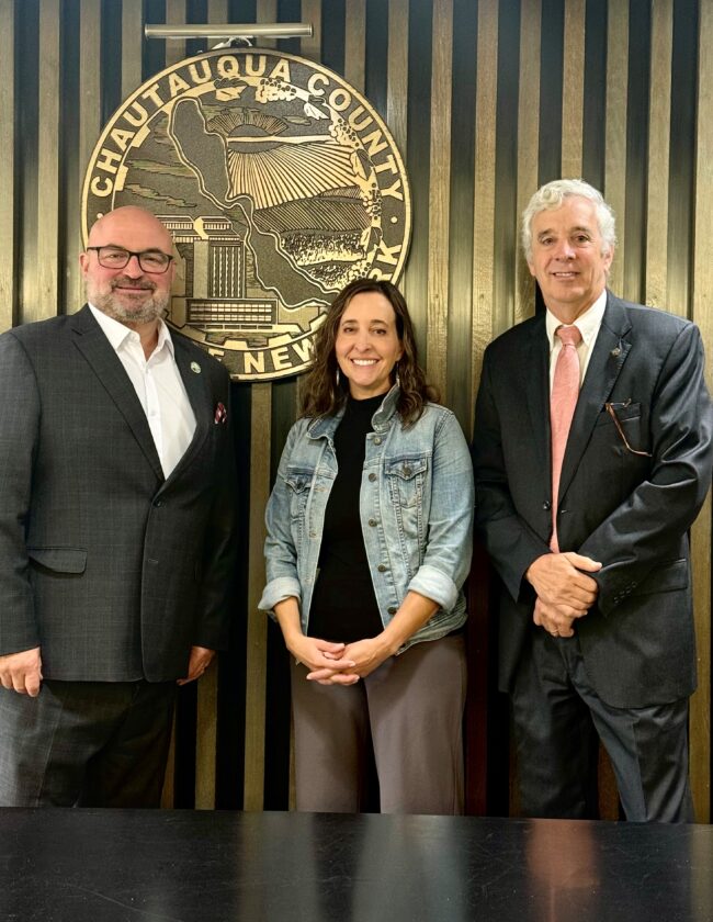 Chautauqua County Government is showing its support for the United Way with employees throughout its many departments taking part in this year’s payroll pledge campaign. Pictured from left are County Executive PJ Wendel; Amy Rohler, United Way of Chautauqua County executive director; and Andy Goodell, 2025 United Way of Chautauqua County campaign co-chair.