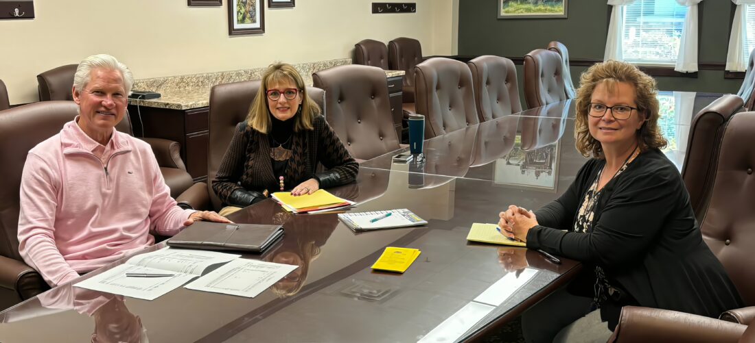From left, Westfield Memorial Hospital Foundation Treasurer Daniel Hocking and Executive Director Patricia Gaughan DiPalma meet with Immediate Past WMHF Treasurer Christine Adams in the WMH Community Room to discuss the foundation’s Annual Campaign Kick-Off.