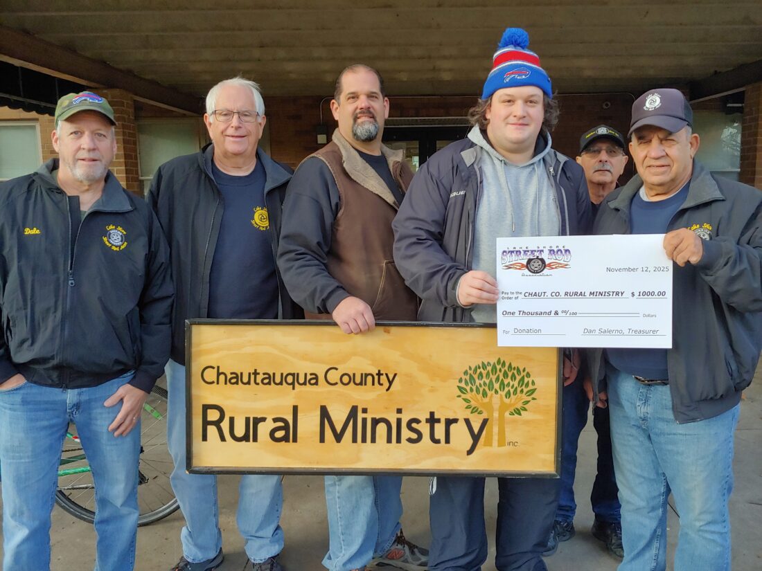 The Lakeshore Street Rod Association, knowing the situation with food insecurities this year, elected to donate $1,000 to the Chautauqua County Rural Ministry to help fill the void. In the attached photo accepting the check on behalf of the Ministry is Alex Majka, from club officers Dan Salerno, Jeff Salerno, Keith Ossman, Dale Davis and member Joel Polito.