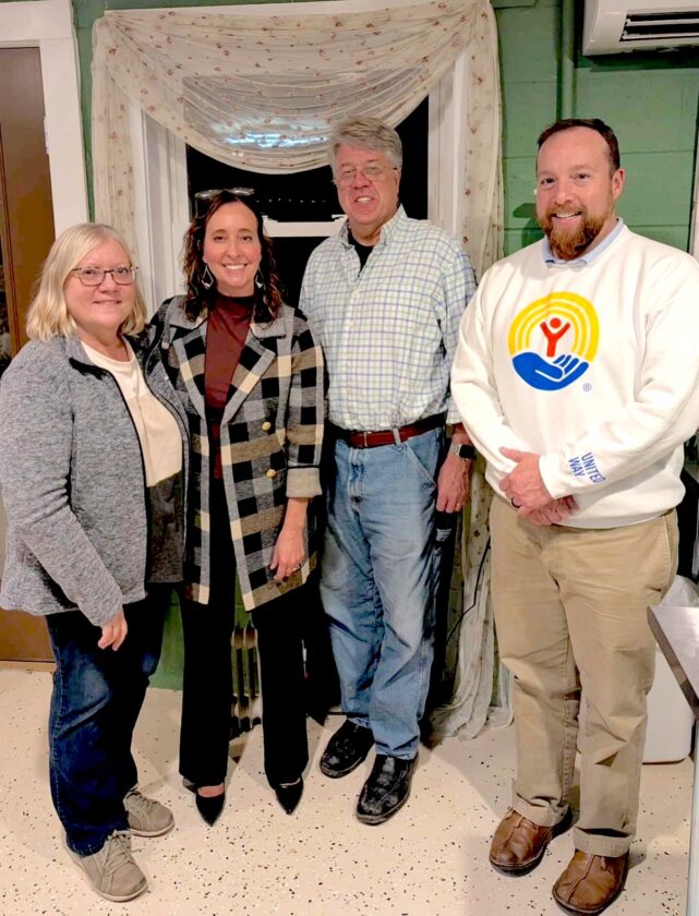United Way of Chautauqua County staff recently met with Lake Erie Wine Country and local winery owners as well as United Way of Erie County staff to discuss "Gift of Giving" — a new partnership and collection drive. Pictured from left are: Pam Burmaster, co-owner of Liberty Vineyards and Winery; UWCHQ Executive Director Amy Rohler; Lake Erie Wine Country Executive Director Eric LeBlanc and United Way of Erie County Marketing and Communications Director Aaron Gast.