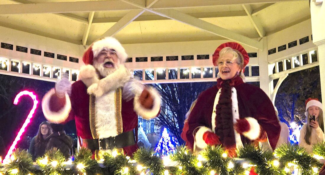 Santa and Mrs. Claus lead the assembled crowd at Moore Park in Westfield in singing “Rudolph the Red Nosed Reindeer.