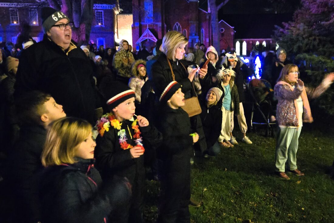 Children and adults joined in the singing of Rudolph The Red Nosed Reindeer before the lighting of the Christmas tree in Moore Park.