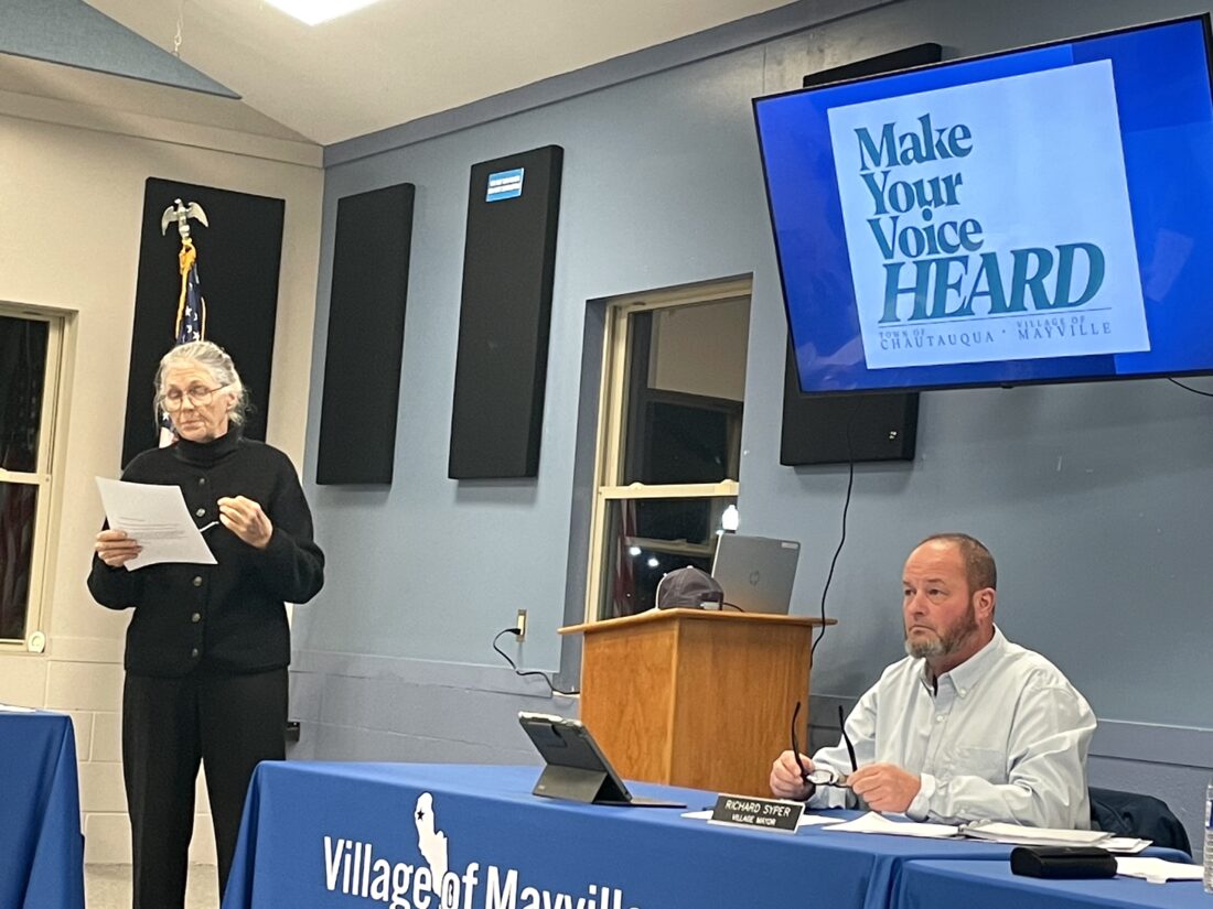 OBSERVER Photo by Gregory Bacon Karen Engstrom, left, comments on the proposed Comprehensive Plan created by the village of Mayville and town of Chautauqua.