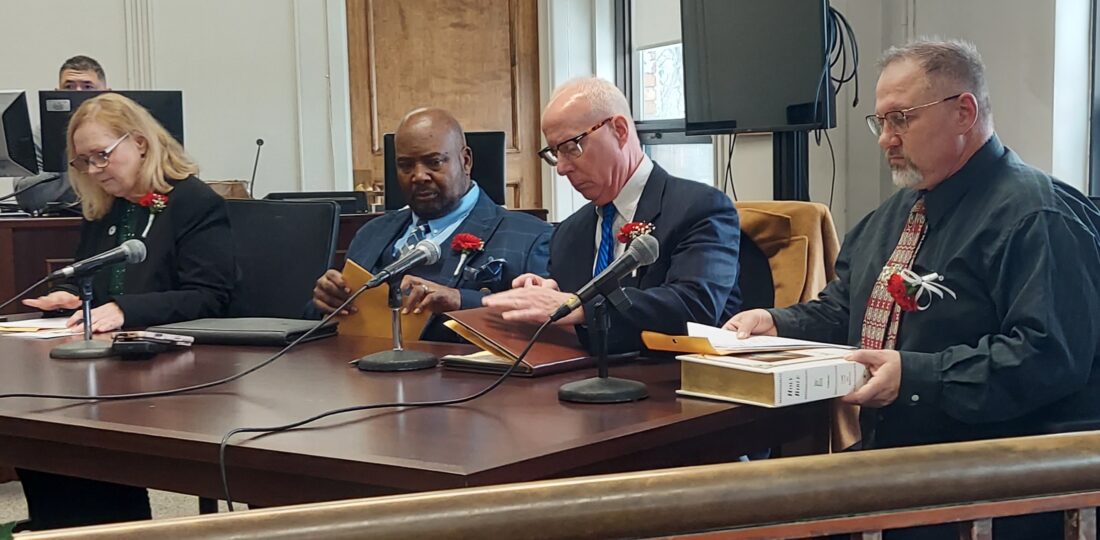 Dunkirk’s new slate of ward representatives sits at the first Common Council meeting of 2026. From left to right are Natalie Luczkowiak, Frank Torain, Gary Frederickson and Michael Civiletto.