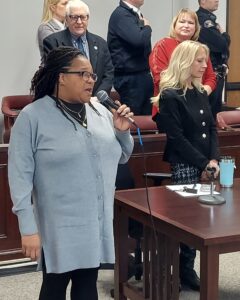 - OBSERVER Photo by M.J. Stafford Myra Thomas sings “The Star-Spangled Banner” at the Dunkirk Common Council’s reorganization meeting for 2026.
