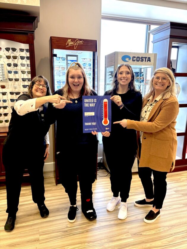 Photos taken from Spectrum Eyecare” on Facebook. Staff from Prevention Works, a prominent donation to the United Way campaign, show how close the campaign is to reaching its goal.