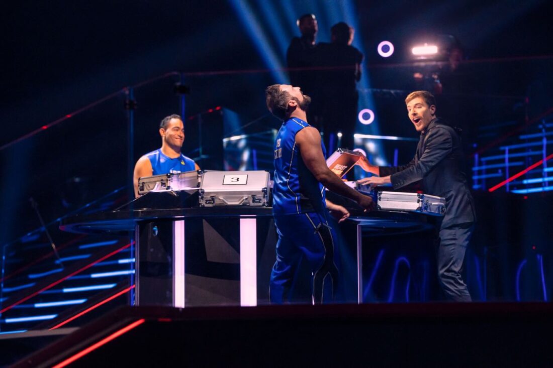 Cory Sims and fellow contestant Tyler Lucas competing in the final challenge, the briefcase challenge.