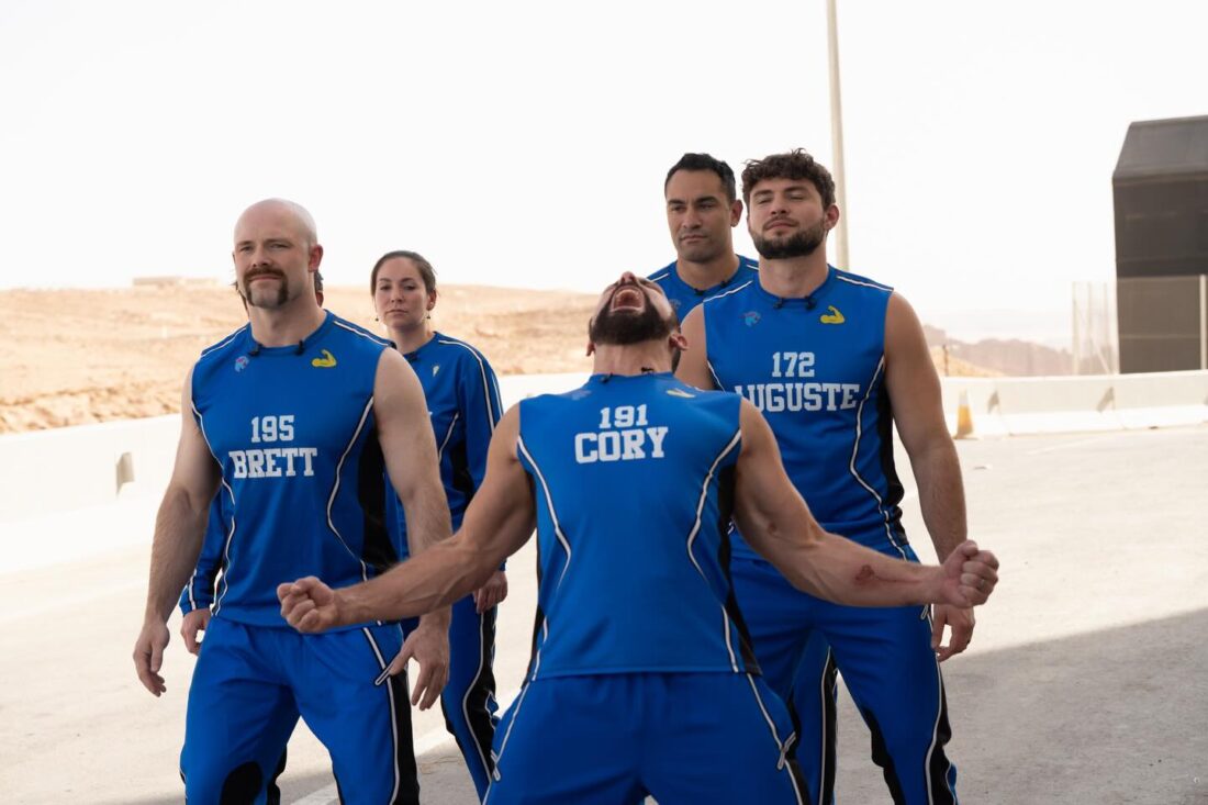 Cory Sims and fellow contestants hype themselves up.