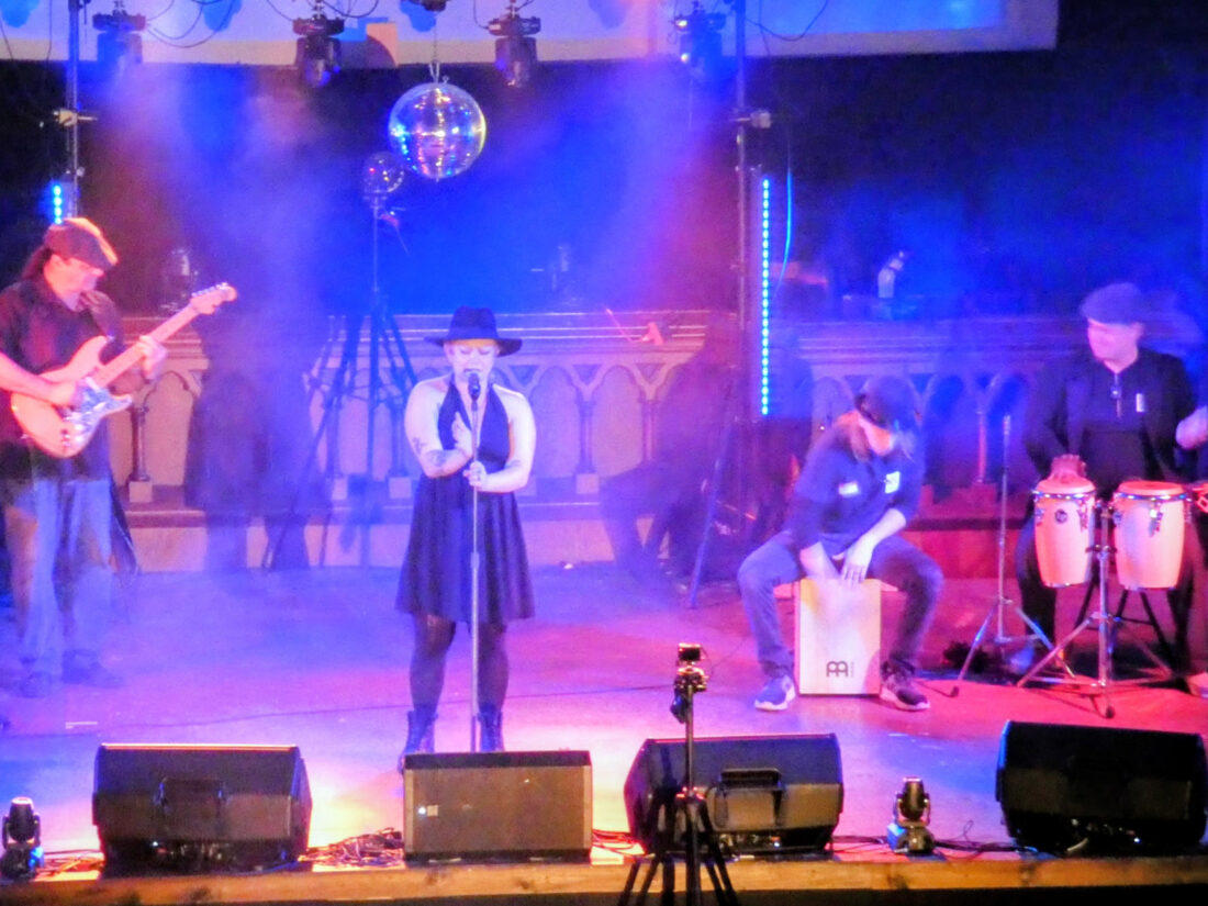 One highlight of the night came when Gypsy The Disciple performed an original song backed by an all-star group featuring last year’s winner Dewyane Moor on cajón, CGT lighting designer Sara “The Greatest” on bass, and stage technician Rya Giuffre on saxophone.