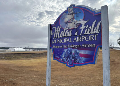 AP Photo An airport sign paying tribute to the Tuskegee Airmen who once trained at the site is pictured at Tuskegee Moton Field Municipal Airport in Tuskegee, AL.