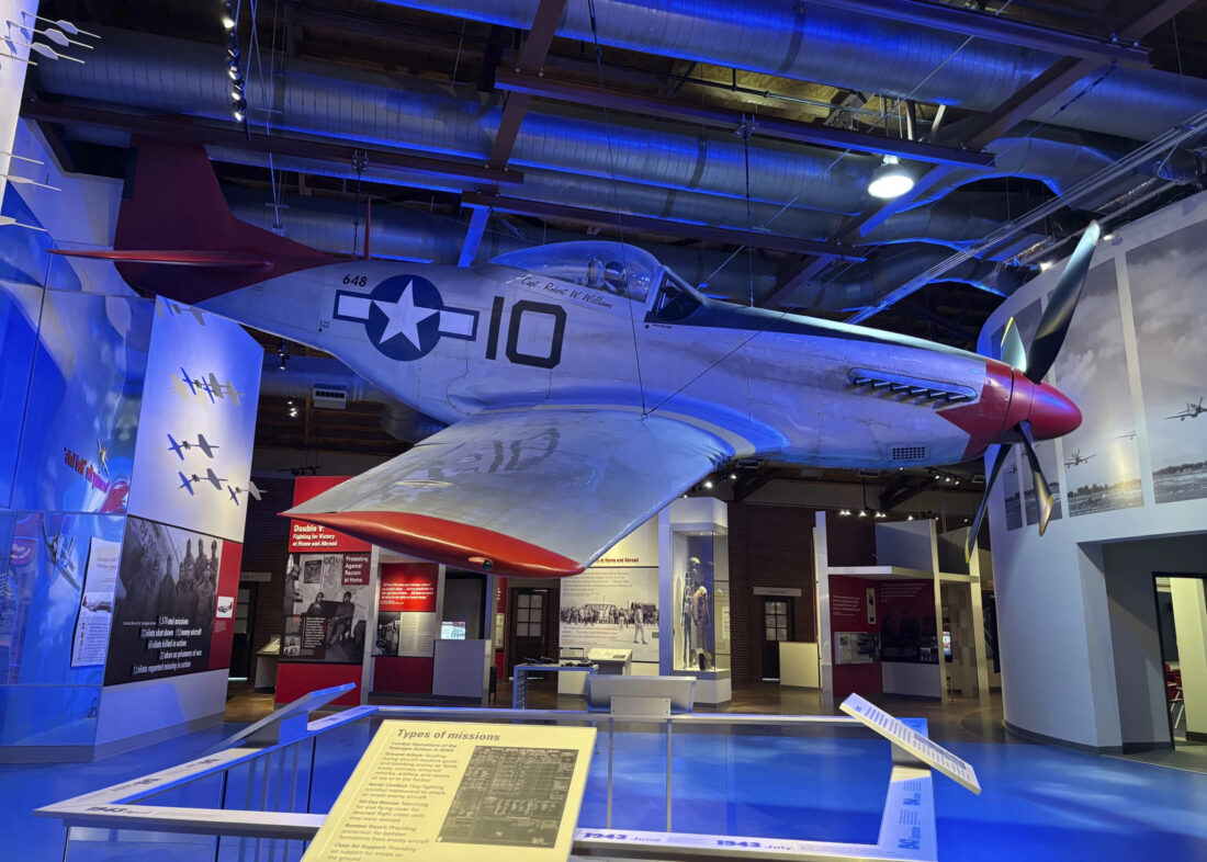 AP Photo A full-sized replica of the P-51 Mustang flown by the Tuskegee Airmen during World War II is displayed in a museum in Tuskegee, AL.
