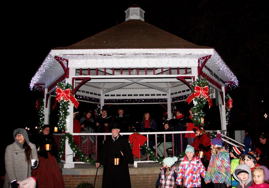 OBSERVER Photo by Tonja Dodd A Dickens Christmas weekend is kicked off in Moore Park Friday, November 17, 2017 in Westfield. Carolers and families gather at the gazebo while awaiting Santa to light the Christmas tree.