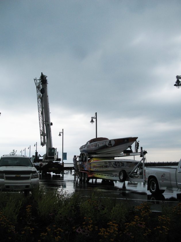Today’s weather has not cooperated for the test run of the Great Lakes Offshore Grand Prix. As of noon today, some rains and a minor thunderstorm delayed some of the happenings, but the event is still on at the Dunkirk Pier.