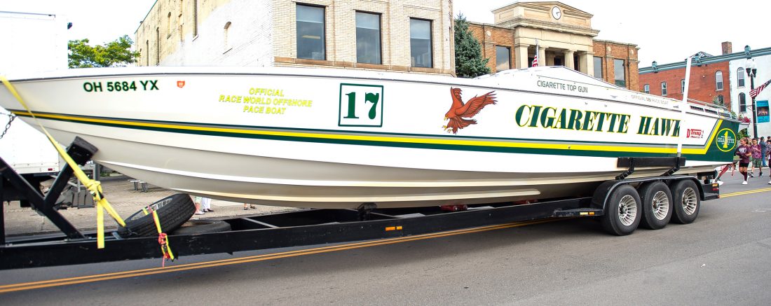 - OBSERVER Photo by Ron Szot Pictured is the Cigarette Hawk, one of the four boats at Friday’s parade.