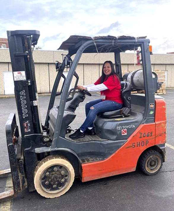 Submitted Photo Pastor Erika Lopez drives a forklift to help distribute food.