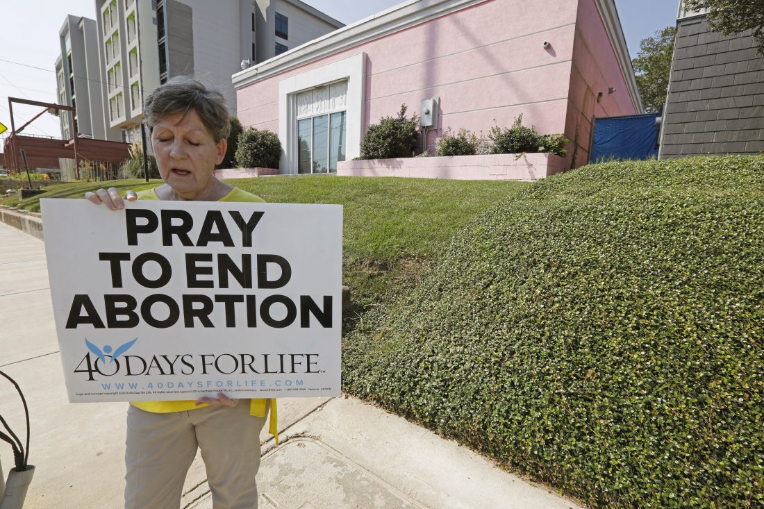 AP Photo/Rogelio V. Solis In this Oct. 2, 2019 file photo, an abortion opponent sings to herself outside the Jackson Womens Health Organization clinic in Jackson, Miss.