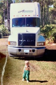 Shayne Matteson is pictured at a young age in front of his father’s semi. Shayne would go on to become a truck driver himself.