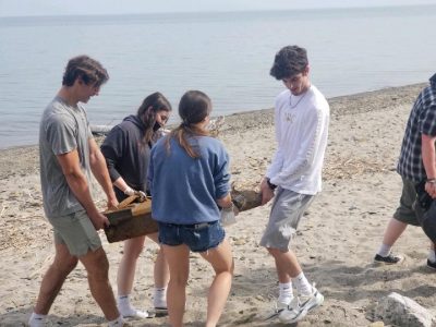 The students separated into different groups, going to St. Columban’s Retirement on the lake, as well as Sunset Bay Beach, the Seneca Nation Beach, and the Old Hideaway Bay Property.