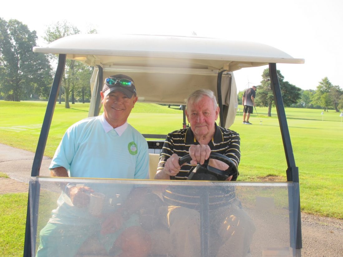 OBSERVER Photo by Anthony Dolce Bill Bamonto and Shorewoods Country Club’s Pro Emeritus Jack Shubert sit in a golf cart together before the start of Friday’s tournament.