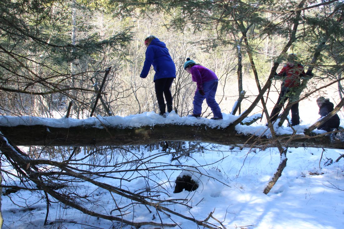 Children have to navigate potentially risky situations to figure out how to use their body, how to balance and compensate for uneven terrain and how to catch themselves when they begin to fall. Playing and exploring in nature provides the perfect tools to work on these skills. Logs, trees, rocks, ice and streams are all potential obstacles.