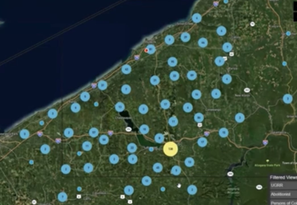 A map provided through a Zoom presentation shows a number of locations in Chautauqua County that were part of the Underground Railroad.