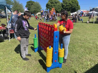 OBSERVER Photo by Jo WardJeovanni Echevarria and Yenesis Lopez play a round of Connect Four on a large yard board Saturday at the Juneteenth Celebrations in Memorial Park in the city of Dunkirk Saturday.