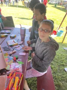 OBSERVER Photo by Jo Ward Alida Carrasquillo does crafts at the Upward Bound tables at the Juneteenth Celebrations in Memorial Park in the city of Dunkirk Saturday.